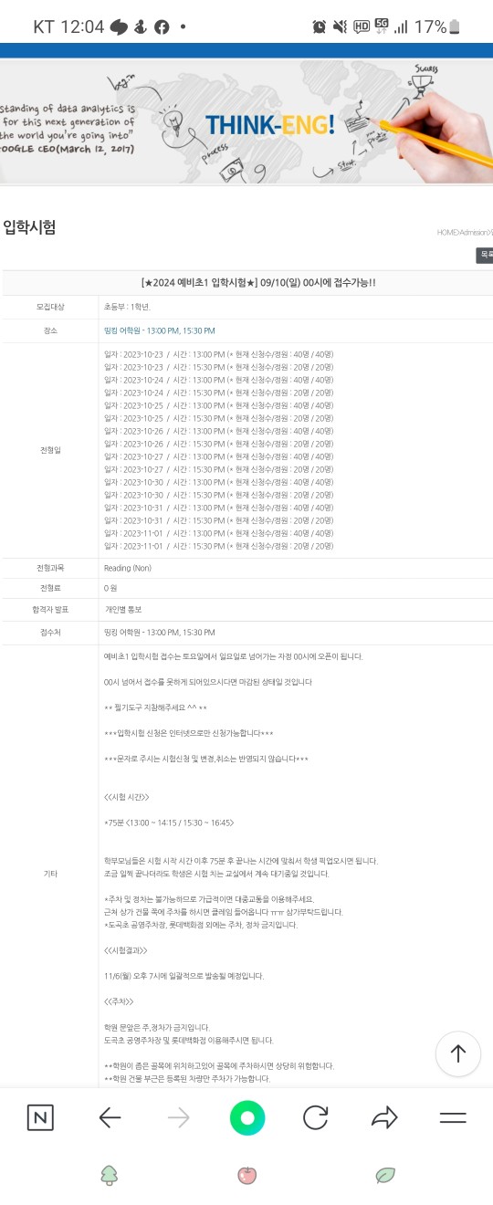 | ILE어학원 예비 초1 설명회 신청 알림/ 입학테스트 (42) | 2023.09.07 |